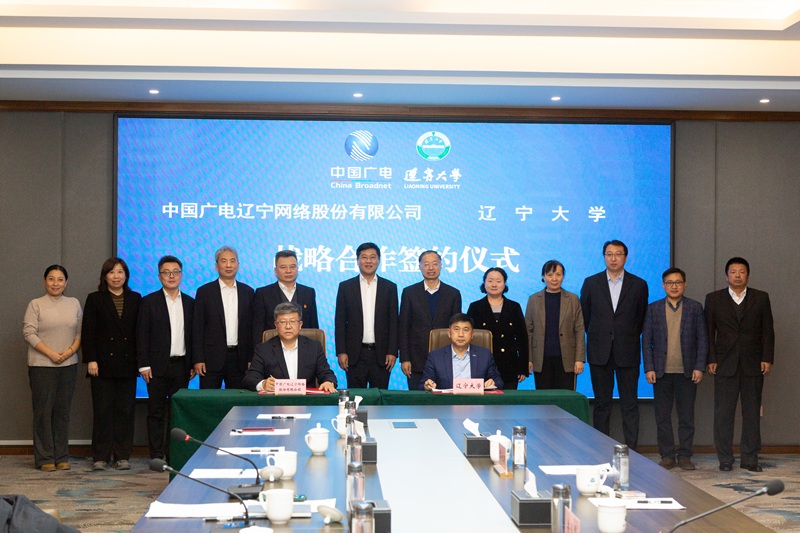 仪式上,马震代表中国广电辽宁公司,陆安慧代表辽宁大学,签署战略合作协议。要春华、苏万宝、李成雨、季永新,潘一山、李宇鹏、吴济龙、张兴宏共同见证签约。未来,双方将以“部校共建”为核心,在人才共育、科研共创、资源共享等方面开展全方位合作。
